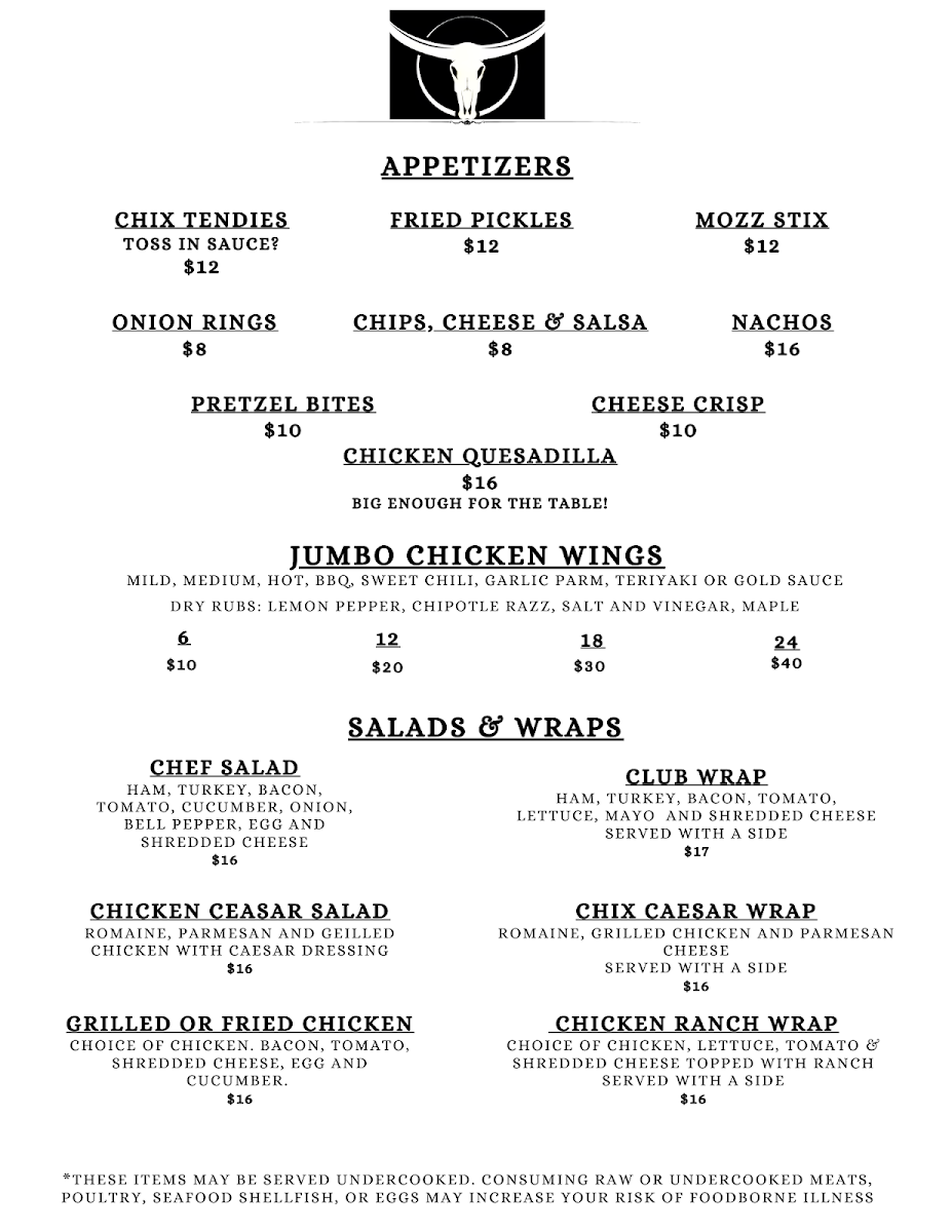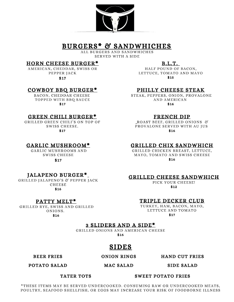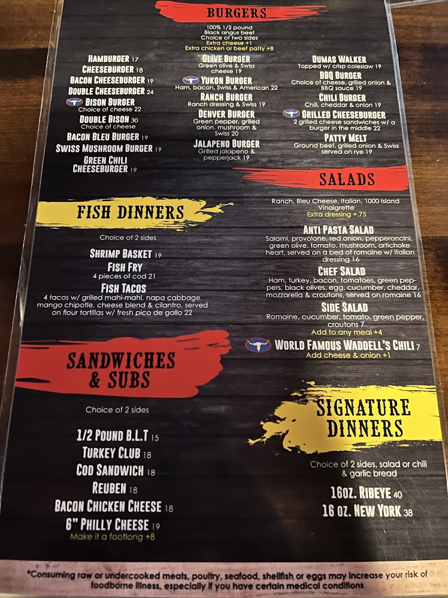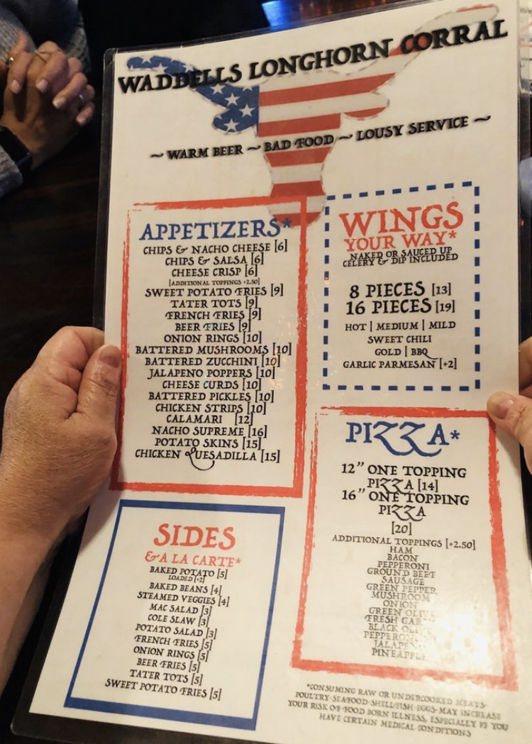 Waddell's Longhorn Menu